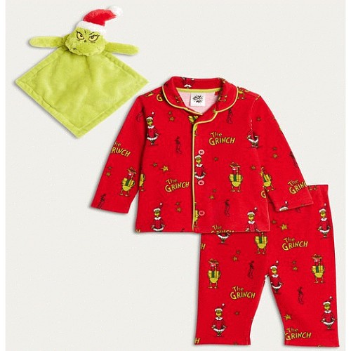 The Grinch Pure Cotton Shirt and Trousers Pyjamas with Comforter in Red