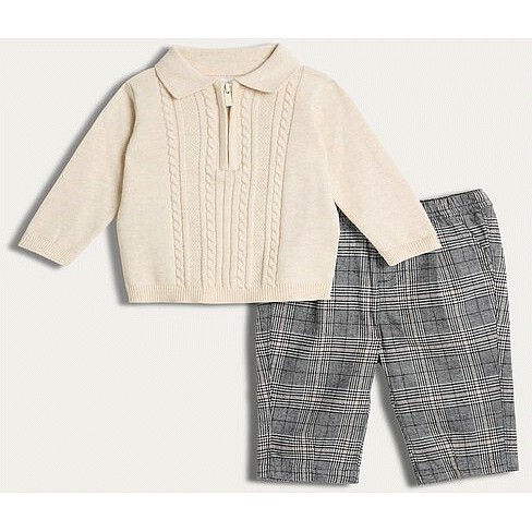 2-Piece Cotton Rich Cable Knit Jumper and Trousers Set in Cream
