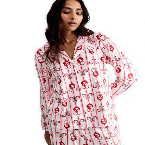Elf Print Fleece Shirt and Trousers Pyjamas in Cream