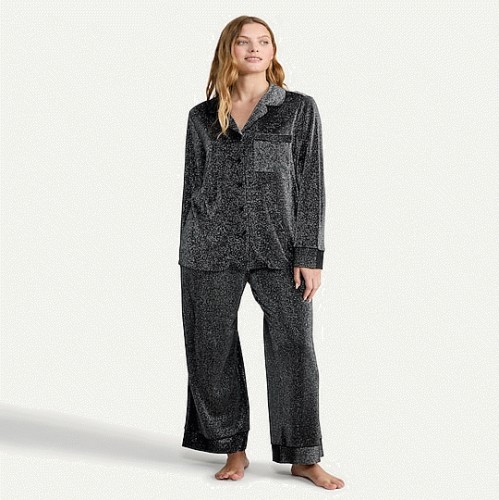 Shimmer Textured Shirt and Trousers Pyjamas in Grey