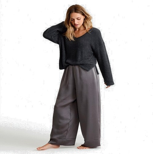 Textured Jumper and Satin Trousers Pyjama Set in Grey