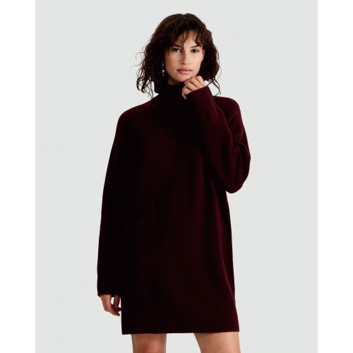Knitted Roll Neck Jumper Dress with Wool in Burgundy