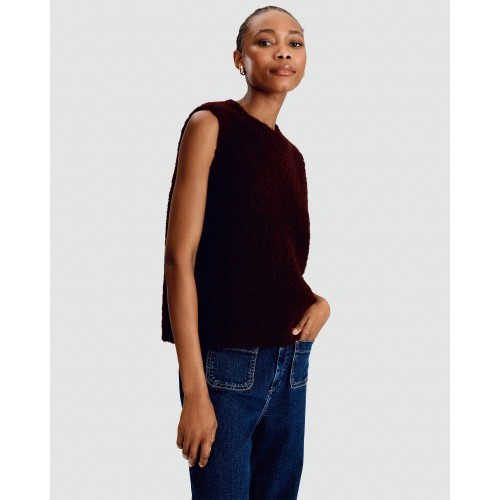 Textured Knitted Sleeveless Top with Wool in Burgundy