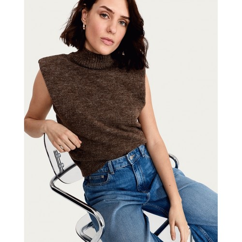 Textured Knitted Sleeveless Top with Wool in Mink
