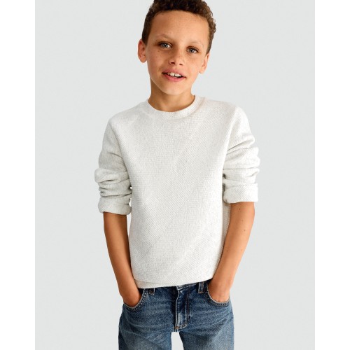 F&F Boys Textured Crew Neck Sweatshirt in Grey Marl