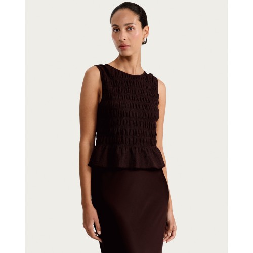 Textured Sleeveless Smock Top in Chocolate