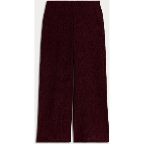 Textured Wide Leg Co-ord Trousers in Burgundy