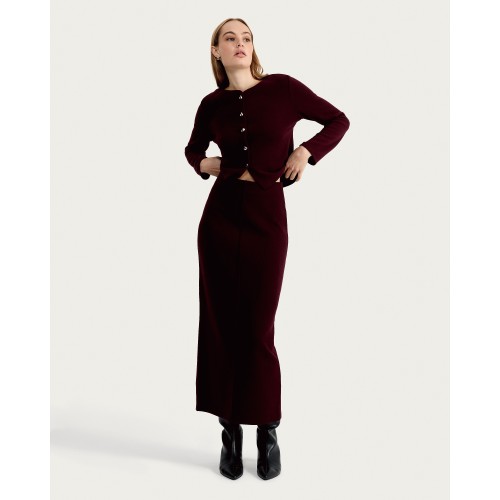 Textured Midi Co-ord Pencil Skirt in Burgundy