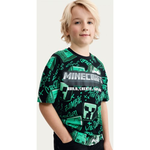 Minecraft Build Create Explore Pure Cotton Oversized Fit T-Shirt in Multi Black