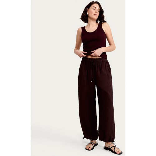 F&F Textured Ruched Sleeve Balloon Hem Top in Chocolate