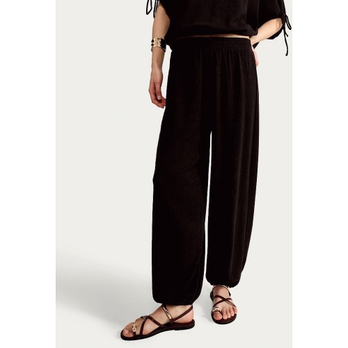 Textured Ruched Sleeve Balloon Hem Top in Chocolate