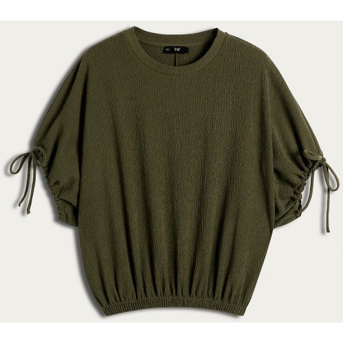 F&F Textured Ruched Sleeve Balloon Hem Top in Chocolate