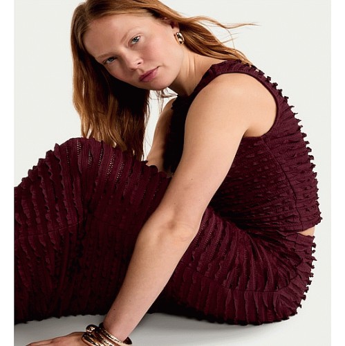 Ribbed Roll Neck Sleeveless Co-ord Top in Brown
