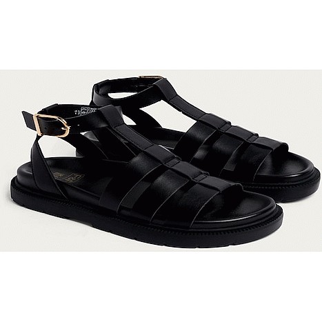 Black Surge Cut Out Strap Flat Sandals