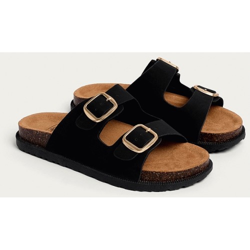 Double Strap Footbed Sandals in Black