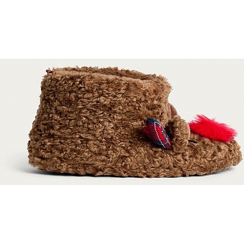 Curtis The Dog Textured Fleece Teddy Bear Slippers in Brown