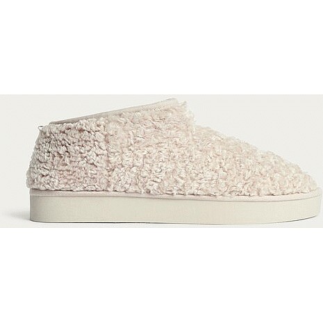Girls Borg Textured Mule Slippers in Neutral