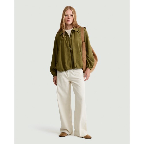Textured Tie Neck Balloon Sleeve Blouse in Cream