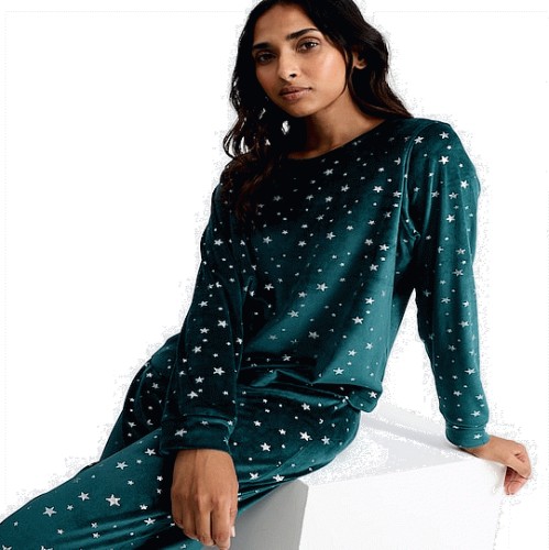 Fleece Star Print Top and Bottoms Pyjamas in Green