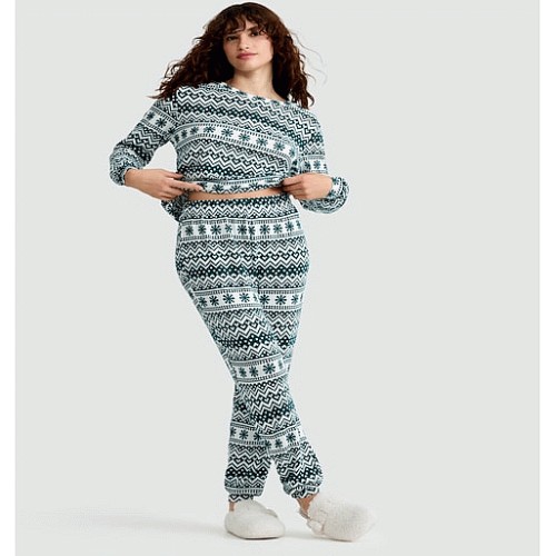 Fair Isle Print Top and Bottoms Pyjamas in Multi Green