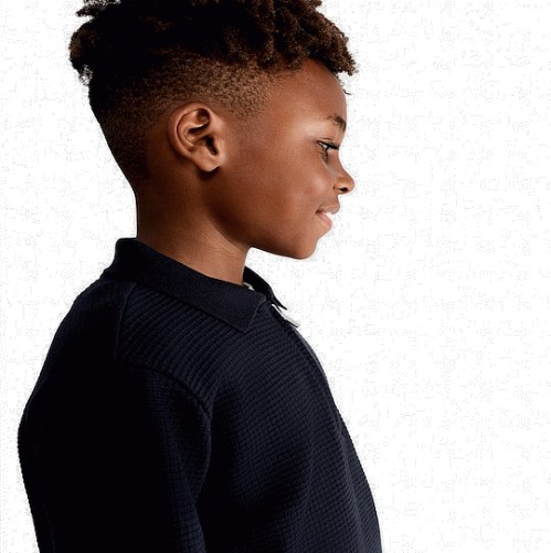 F&F Boys Pure Cotton Waffle Textured Zip Polo Top in Navy