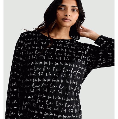 Fleece La La La Print Top and Bottoms Pyjamas in Black