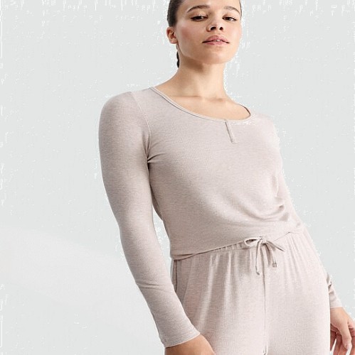 Henley Top and Drawstring Bottoms Pyjamas in Cream