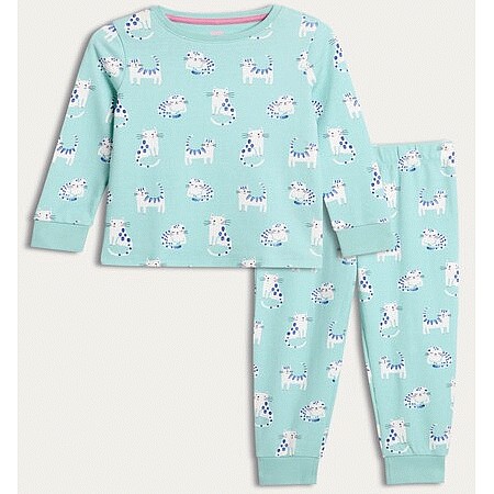 Girls Pure Cotton Cat Print Top and Bottoms Pyjamas in Multi
