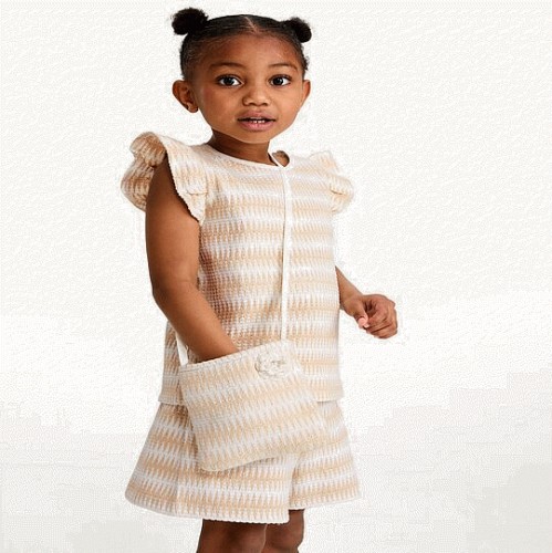 F&F Girls Striped Textured Top and Shorts Set in Multi
