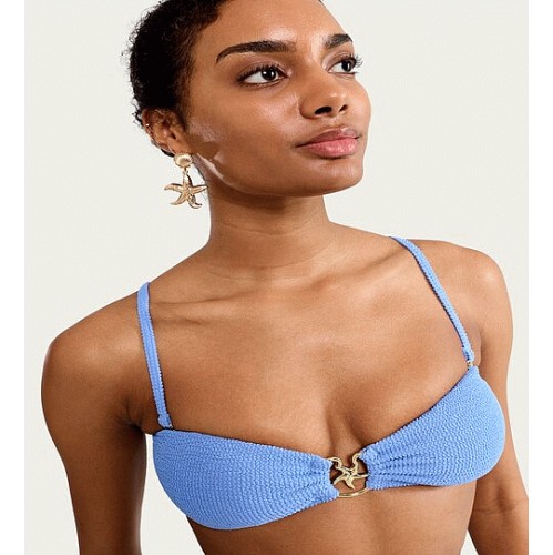 Textured Starfish Accent Non Wired Bikini Top in Blue