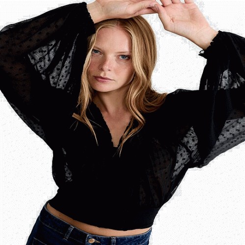 Chiffon Dobby Velvet V Neck Blouse in Black