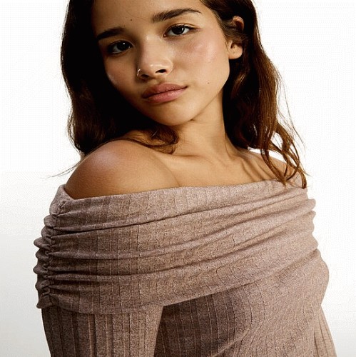 OH ME OH MY Off Shoulder Ribbed Co-ord Top in Neutral