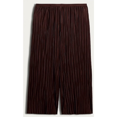 Crinkle Textured Wide Leg Trousers in Chocolate