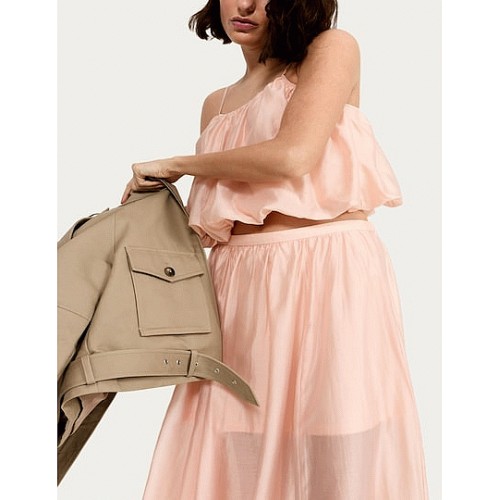 Lyocell Rich Gathered Co-ord Midi Skirt in Pink