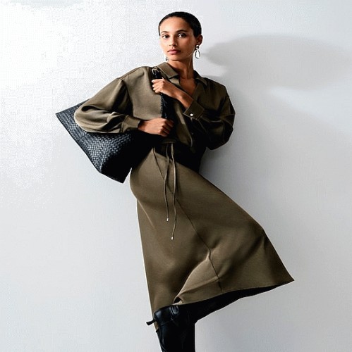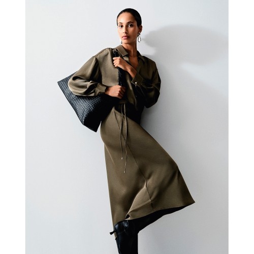 Tie Detail Midi Skirt in Khaki