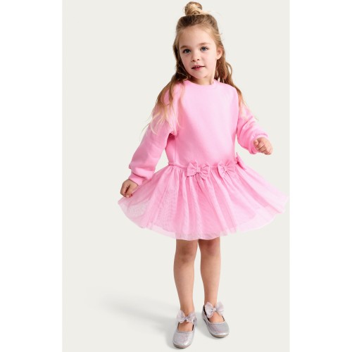 F&F Girls Bow Detail Tulle Skirt Sweater Dress in Pink