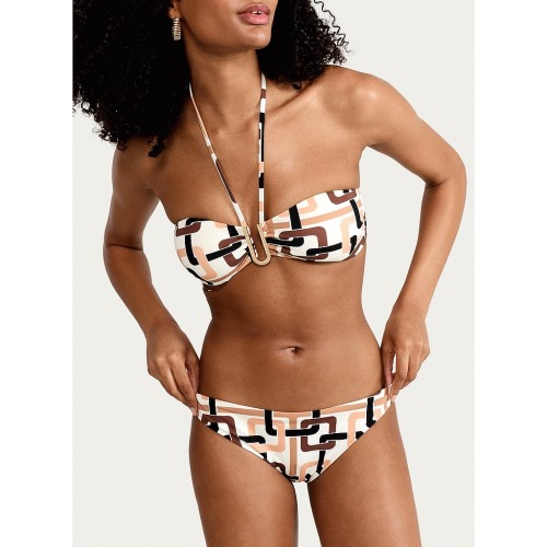 Geometric Print Tie Side Bikini Bottoms in Multi Brown