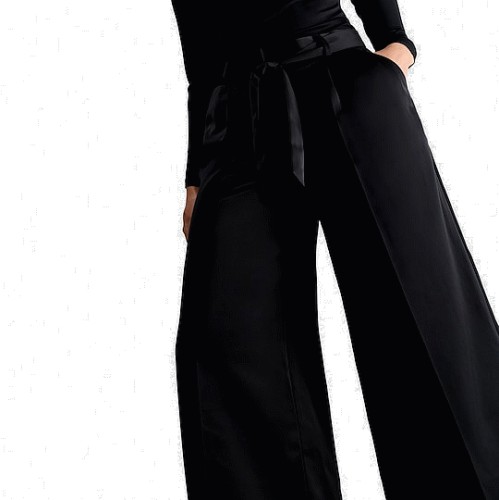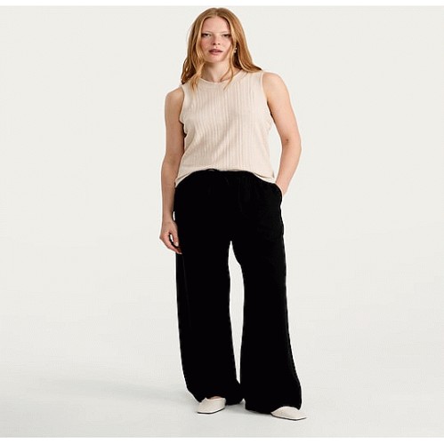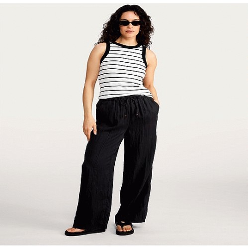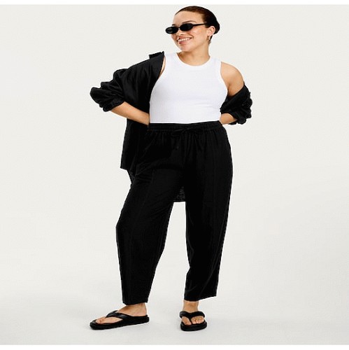 Tie Waist Barrel Leg Trousers with Linen in Black