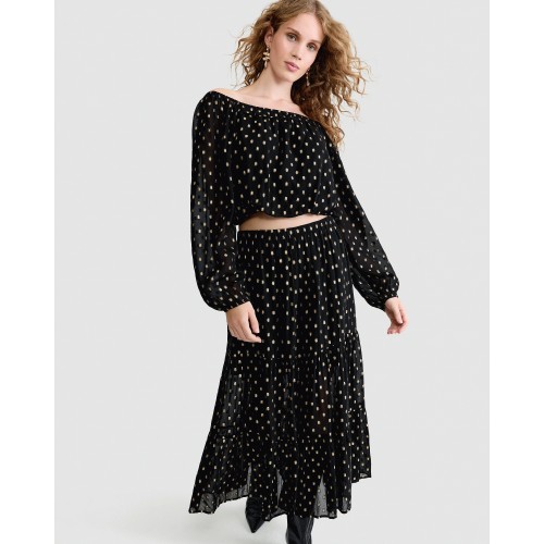 Tiered Metallic Polka Dot Co-ord Midi Skirt in Black