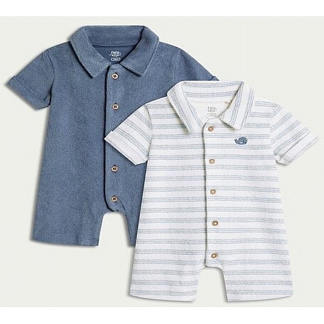 2-Pack Cotton Rich Towelling Rompers in Blue