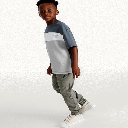 F&F Boys Cotton Rich Cuffed Cargo Joggers in Grey