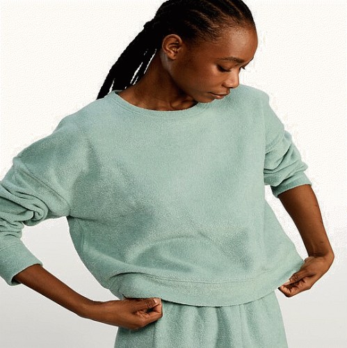 Towelling Textured Long Sleeved Pyjama Sweatshirt in Green