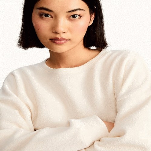 Towelling Long Sleeved Pyjama Top in Cream