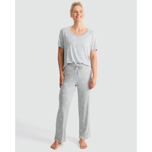 Tree Print Scoop Neck Pyjama Top in Grey