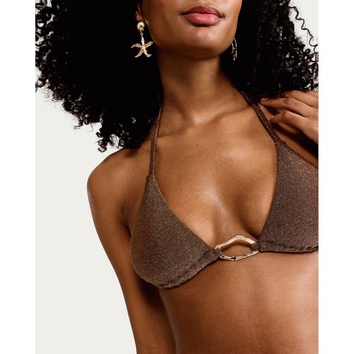 Metallic Triangle Halter Neck Bikini Top in Bronze