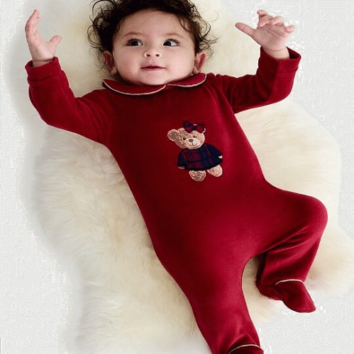 Fleece Teddy Bear Christmas Sleepsuit in White