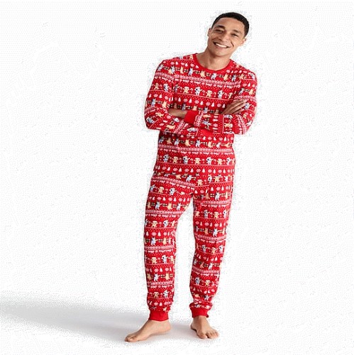 Unisex Teddy Bear Print Matching Family Christmas Pyjamas in Multi
