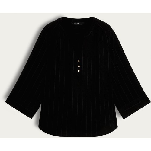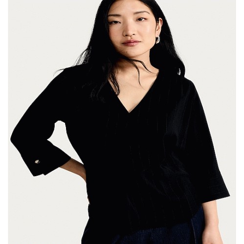 Chiffon Dobby Velvet V Neck Blouse in Black