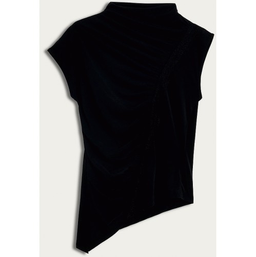 Ruched Lace Trim Short Sleeved T-Shirt in Black