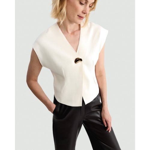 V Neck Metal Accent Top in Cream